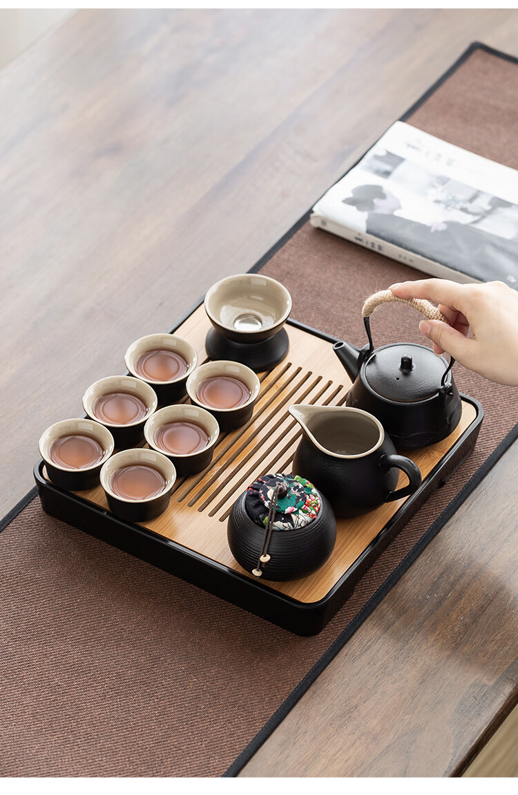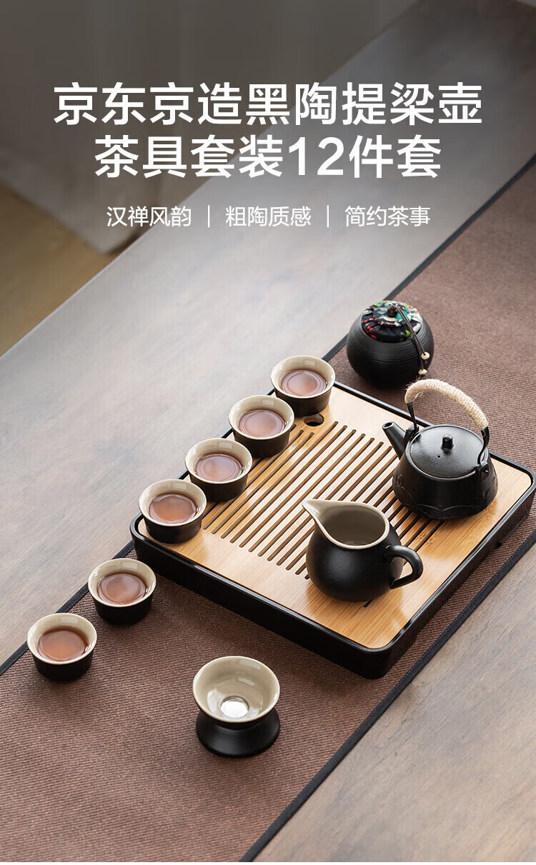 茶具整套 功夫茶具陶瓷套装茶壶茶杯茶盘【黑陶提梁壶】 12件套