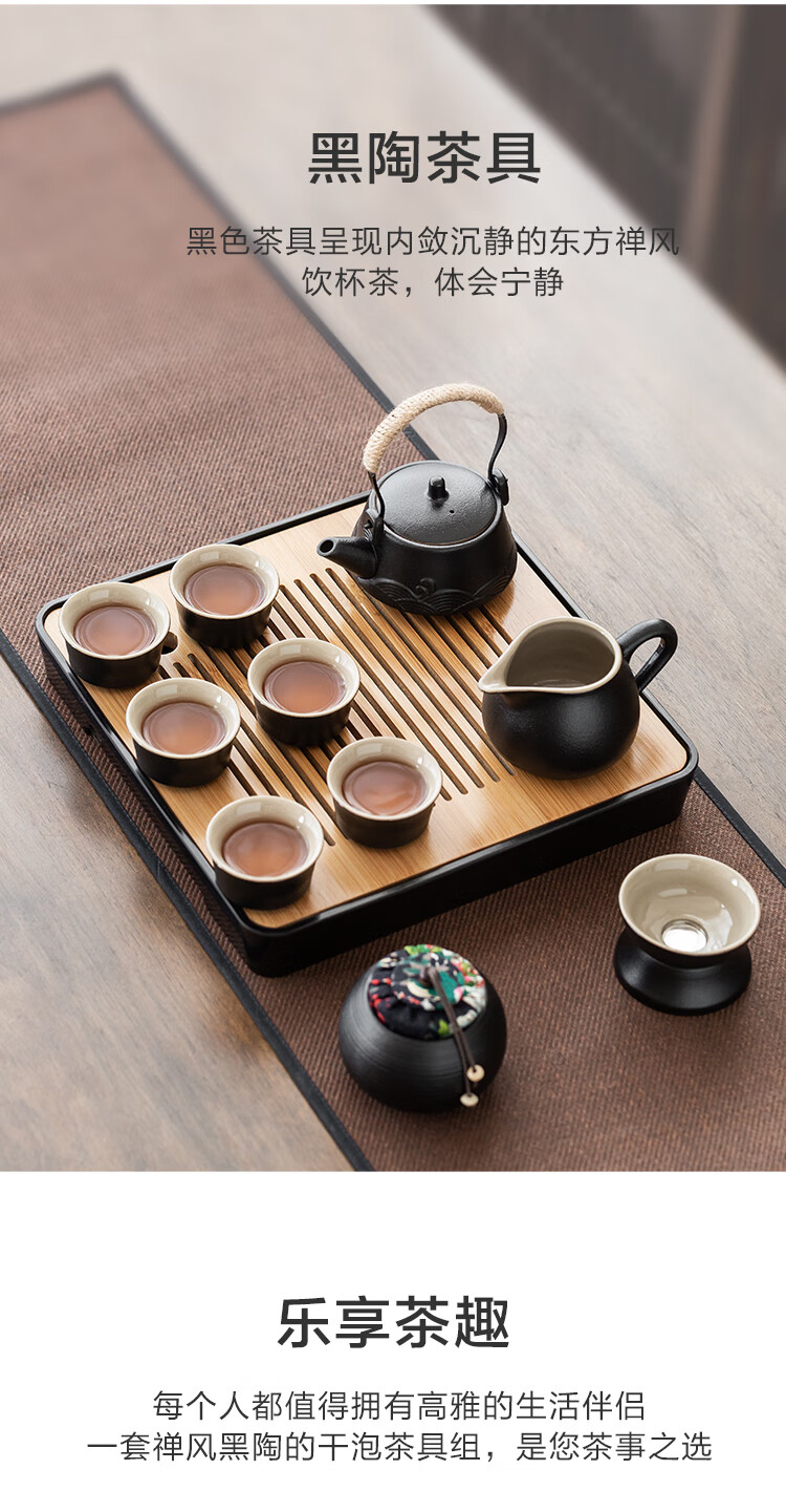 商品名称:茶具整套 功夫茶具陶瓷套装茶壶茶杯茶盘【黑陶提梁壶】 12件套